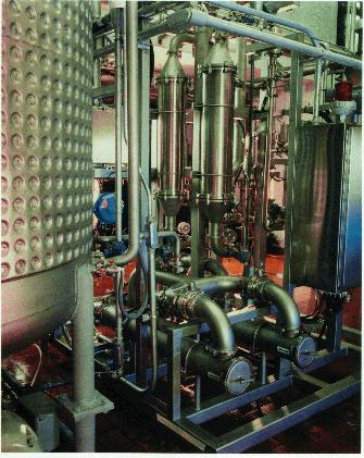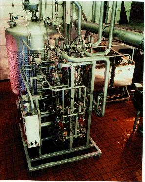 two locations: For the in-plant trials, a 7000-liter CMB was designed based on original concepts developed by the Principal Investigator, Professor Munir Cheryan. It consisted of a 2m dia x 2.4m high fermentation vessel coupled to ceramic membranes in a computer-controlled system with its own automated CIP system, as shown in the pictures below.